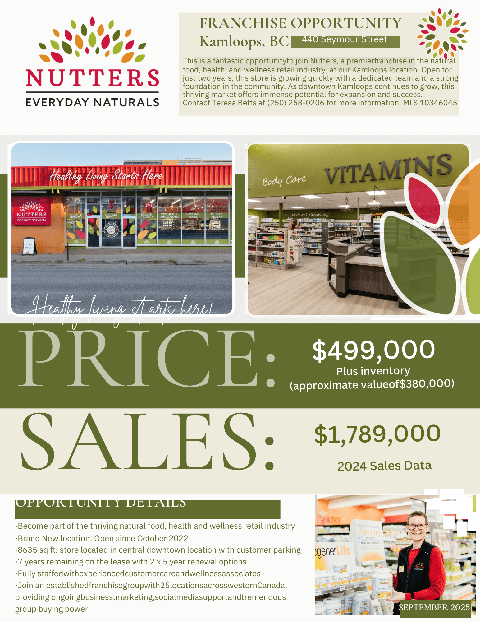Available OpportunityKamloops, BC440 Seymour StreetThis is an excellent opportunity to join Nutters with a turn-key location in Kamloops’ downtown! View The Sell Sheet